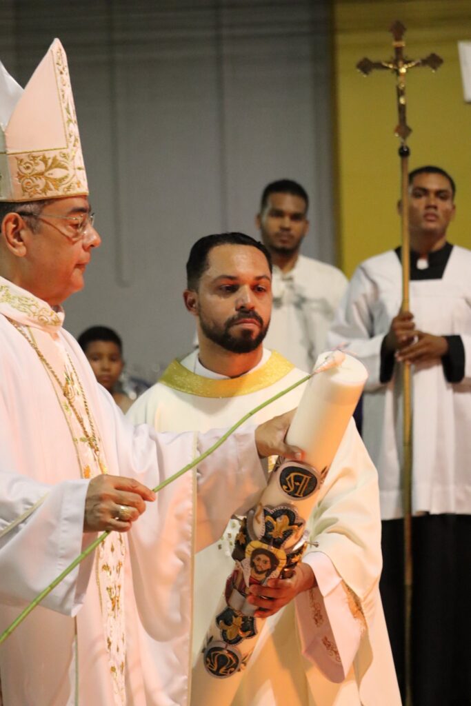 Santa Missa da Vigília Pascal – Sábado Santo, presidida por Dom Dorival e concelebrada pelo Padre André Luiz.